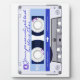 Este producto presenta mi diseño "Cinta Cassette" en azul. El diseño de "Cinta Cassette" incluye una cinta típica de música vintage, con un funda transparente y pegatinas coloridos y escritura, además de un texto de personalizable que puede personalizar.