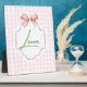 Agrega un toque de dulzura y elegancia al cuarto de tu pequeño con esta impresión personalizada para la guardería de una bebé. Con un fondo de gingham rosa suave, un delicado lazo de cinta y un nombre personalizable en una fuente de escritura encantadora, esta obra de arte es el toque final perfecto para cualquier guardería, sala de juegos o dormitorio.