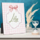 Agrega un toque de dulzura y elegancia al cuarto de tu pequeño con esta impresión personalizada para la habitación de la bebé. Con un fondo de gingham rosa suave, un delicado lazo de cinta y un nombre personalizable en una fuente de escritura encantadora, esta obra de arte es el toque final perfecto para cualquier guardería, sala de juegos o dormitorio.