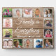 Crea tu propia placa de collage de fotos con 14 de tus fotos favoritas en un fondo de textura de madera.Personaliza con el nombre de la familia y la fecha establecida. La cita "Familia es todo" agrega un toque único al regalo de la placa fotográfica.