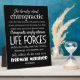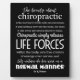 La cita del Dr. B.J. Palmer: "La belleza de la quiropráctica es el hecho de que funciona con medios naturales. No pone nada nuevo en el cuerpo, ni quita ninguna glándula natural ni ningún órgano. La quiropráctica simplemente libera fuerzas vitales dentro del cuerpo, libera rivulets libres de energía sobre los nervios y deja que la naturaleza haga su trabajo de una manera normal". en una variedad de tipografía/fuentes. Ideal para la exposición en salas de ajuste o para la decoración de recepción.