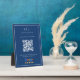 Placa Expositora Código QR del enlace de revisión de monograma azul