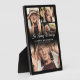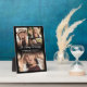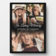 Placa conmemorativa de imagen personalizada con fondo negro, 4 fotos preciadas, el dicho "en memoria amorosa", su nombre y fechas.