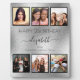 Un regalo de los amigos para el cumpleaños 21 (o cualquier edad) de una mujer, celebrando su vida con un collage de seis de tus fotos de alta calidad de ella, sus amigos, familia, interés o mascotas. Personalice y agregue su nombre, edad 21 y sus nombres. Un falso fondo metálico plateado. Su nombre está escrito con una escritura de estilo negro y moderno con letras a mano con toques. Para que los cambios sólo eliminen el nombre del ejemplo, deje los espacios o la emoji delante y después del nombre.