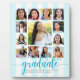 Esté orgulloso, regocíjese y muestre este hito de su graduado favorito. Cree este soporte de colaje de fotos personalizado de graduación de escuela secundaria K-12 femenino, impresionante, simple, moderno y con un bonito acabado. Una visualización divertida y elegante de tipografía de brillo azul turquesa, junto con su nombre, año de clase y escuela y 13 fotos de su elección superpuestas en un fondo a rayas azul turquesa claro y blanco. Personalice el texto personalizado con el nombre de su graduado, escuela y año de clase. También están disponibles invitaciones, tarjetas de agradecimiento, tapas de gorra, servilletas, platos y otros regalos de graduación a juego en esta colección moderna y elegante. Garantizado para preservar los recuerdos queridos de su ocasión especial.