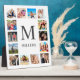 Crea tu propio collage de fotos personalizado de 14 fotos, placa con tus imágenes personalizados en un simple fondo blanco moderno. La cara de la placa también muestra su monograma y nombre. Añade tus fotos, diseños o obras de arte favoritas para crear algo realmente único.