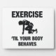 Ejercicio hasta que tu cuerpo se comporte como eslogan con tema de entrenamiento cruzado. Si eres un hombre o mujer al que le gusta hacer ejercicio duro, entonces consigue este logo en blanco y negro para la multitud que levanta pesas, corre y hace ejercicio.