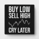 Placa Expositora Comprar bajo, vender alto, llorar más tarde, curio