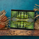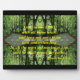Verso de la Biblia inspiradora, Proverbios 3:5-6, "Confianza en el Señor..." en texto amarillo sobre una imagen de fondo manipulada con foto de dos caminos en el bosque con reflejos de agua. Las tiras negras de la parte superior e inferior se pueden cambiar a un color diferente, si se desea.