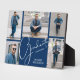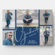 Una cuadrícula azul de cinco fotos muestra tus fotos favoritas en este toque de graduación con la palabra graduado, año de clase y nombre. Más colores hechos para usted en nuestra tienda, así como invitaciones a fiestas de graduación, postales y invitaciones.