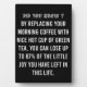 Al reemplazar su café matutino con una taza caliente de té verde, usted puede perder hasta el 87% de la pequeña alegría que le queda en esta vida. Es una frase graciosa del café con un hecho verdadero. Si eres un amante del café, puedes relacionarte con esto o con alguien cuyo día no empiece sin una bebida de café por la mañana.