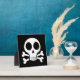 Placa Expositora cráneo espeluznante sobre un fondo negro