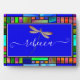 Marco de vidrio manchado y libélula, nombre de edición (entre pequeñas cajas)