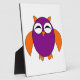 Esta impresionante placa presenta un búho lindo con los ojos cerrados como si estuviera durmiendo y unas garras lindas. Su cuerpo es morado y sus alas, orejas, garras y pico son naranjas. Este lindo búho es tan adorable que a los adultos les encantará tanto como a los niños.