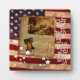 Un diseño vintage que muestra la declaración de independencia el 4 de julio de 1776 frente a la bandera de las Estrellas y Tiras