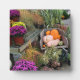 Una divertida variedad de flores y plantas otoñales con calabazas y calabazas. ¡Bonita decoración otoñal! Foto tomada en octubre de 2017.