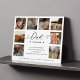 Envía un hermoso regalo personalizado a tu padre que apreciará para siempre. La placa está diseñada como una definición de diccionario con "Papá" diseñada en un hermoso estilo de escritura negra manuscrita. Bloqueo especial de fotos de la familia del día del padre para mostrar sus propias fotos y recuerdos familiares especiales. Nuestro diseño presenta un sencillo diseño de collage de 8 fotos. Personaliza con la definición/mensaje de tu propio padre junto con los nombres de los miembros de tu familia. ¡Hace un gran regalo para el Día del Padre, cumpleaños, aniversarios, jubilación y mucho más! Diseño de Moodthology Papery.