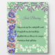 Decoración de color de flores "Home Accent Irish Blessing Plaque" para el Día de San Patricio. El ilustracion tiene un colaje floral de flores de lila y de pansy en medio de la vegetación sobre un fondo verde de shamrock. El TEXTO es fácilmente personalizable con su elección de irlandés/cualquier bendición. Se pueden cambiar las palabras y la caligrafía.