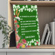 Decoración de color de flores "Home Accent Irish Blessing Plaque" para el Día de San Patricio. El ilustracion tiene un colaje floral rojo, naranja y rosa en medio de la vegetación sobre un fondo verde de shamrock. El TEXTO es fácilmente personalizable con su elección de irlandés/cualquier bendición. Se pueden cambiar las palabras y la caligrafía.