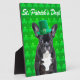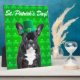 Bulldog francés con el Gorra de St. Patrick y los antecedentes de los tréboles.