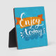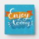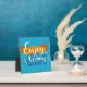Disfruta hoy - cita positiva, caligrafía escrita a mano sobre fondo de color gris azul y cinta naranja. Diseño de tipografía vectorial para tarjetas, camisetas, posters y contenido de medios sociales. | Bigstock® - Todos los derechos reservados.