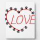 Dibujos de huellas de perros, un corazón rojo y la palabra "amor". Diseño original.