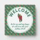 DOMINICA FLAG Christian Placa de bienvenida para hombres y mujeres que aman Dominica. Esta PLAQUE DE BIENVENIDA le añadiría mucho a su vestíbulo, recepción o decoración de salón. El diseño muestra la bandera de DOMINICA en un patrón de baldosas. En el centro, hay un pequeño mapa del país con texto curvo que dice BIENVENIDA. Este texto es personalizable, así que puedes cambiarte a tu propio saludo en tu propio idioma. En la parte inferior hay un versículo de las Escrituras de Josué a las 24:15 - "En cuanto a mí y a mi casa, serviremos al SEÑOR". Este texto también es personalizable, así que puedes reemplazarlo con tu propio versículo, lema o mensaje inspirador favorito. Esta PLAQUE DE BIENVENIDA sería un regalo maravilloso para recién casados, nuevo hogar, nuevos cristianos, cumpleaños, Navidades, año nuevo y a lo largo del año. Esto se vería bien en casas privadas y lugares públicos, como restaurantes, bares de vinos, centros culturales, embajadas, escuelas, iglesias, etc. - en cualquier lugar con una decoración o influencia de temática DOMINICANA. Los elementos coincidentes se pueden encontrar en la colección DOMINICA, así que puedes crear algunos juegos de regalos increíbles.
