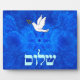 El "shalom" (paz hebrea) y la paloma con un poco de rama de olivo en el pico sobre un agradable fondo fractal azul y blanco que recuerda a las alas de los pájaros. El texto de paloma y hebreo son elementos independientes que permiten que sean dimensionados, rotados o movidos de cualquier otra manera según lo desee.