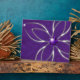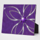 Contra un fondo kaleidoscopio abstracto de fractales de apofisis suave se encuentra una flor de cuatro petalos de fibra de plata, con una amatista brillante en el centro y pequeñas piedras redondas en las esquinas. Un ilustracion que usa el púrpura como símbolo de la realeza y la riqueza.