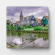 Pintura de casas tradicionales de pesca de madera, canal y cisne en Marken, Holanda. Vistas al canal, al puente y a las tradicionales casas de pescadores de los pueblos acuáticos. Símbolos tradicionales de Holanda.