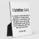 1 Corintios 13:4-8 El amor es paciente, el amor es amable y no es celoso; el amor no presume y no es arrogante, no actúa sin devenir; no busca el suyo propio, no es provocado, no toma en cuenta un mal sufrido, no se regocija en la injusticia, sino se regocija con la verdad; carga todas las cosas, cree todas las cosas, espera todas las cosas, perdura, todo. El amor nunca falla