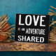 Tarjeta de acento para su librería o mesa. El amor es una aventura compartida.