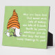 En la placa de la tablilla dulce aparece el gnomo chica irlandés con rocas de champú y fondo de color oro/verde texturado : Irish Blessing dice: Que tengas amor que nunca termina, Mucho dinero y muchos amigos. ¡Que la salud sea tuya, sea lo que hagas, y que Dios te envíe muchas bendiciones!