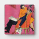 Artista:Morgan Kane | Un hombre está sentado en una silla roja brillante leyendo el periódico, y una mujer está sentada en el brazo