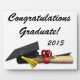 Esta imagen es de una gorra negra con una cinta de oro y un diploma que se enrollan con una cinta roja atada alrededor. Una gran imagen para el graduado. Este diseño se puede personalizar completamente cambiando el fondo o el texto. Las placas vienen en una variedad de tamaños.