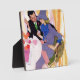 Artista:Joe DeMers | Mujer con un vestido morado y gorra tomando café en una mesa con un hombre fumando un cigarrillo