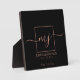 Elegantes letras de oro rosa en negro, iniciales de edición (entre bloques) y nombre, ciudad,