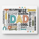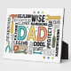 Este diseño audaz y colorido rinde homenaje a los padres que pueden arreglar, construir y crear. La palabra DAD ocupa el centro del escenario, adornada con puntas blancas nítidas, mientras una serie de herramientas -martillo, llave, destornillador, alicates, sierra- la rodean, simbolizando la experiencia práctica de la paternidad. Las estrellas dispersas le dan un toque lúdico, haciendo que este diseño sea perfecto para celebrar a los papás que abrazan a su artesano interno. Ya sea por el Día del Padre, un cumpleaños, o solamente una muestra de aprecio, este dinámico tributo es para los padres que hacen que las cosas sucedan —tanto con herramientas como con amor.