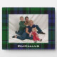 Simpática placa fotográfica de patrón de lona tartán de clan MacCallum azul y verde tradicional. En negrita blanco se lee MacCallum, que es personalizable para que pueda leer lo que desee. Añade tu propia foto para enmarcar esa imagen especial. Hace una gran idea de regalo para cualquiera.