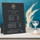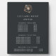 Elegante placa con caballete muestra sus servicios de salón o carta de precios con letras blancas clásicas sobre un rico fondo negro suave adornado con un ilustracion de flores de hibisco de Relieve metalizado de cobre tropical. Incluye tres encabezados de personalizable y campos de texto de cuerpo. Para ajustar el diseño, introduzca el texto y, a continuación, utilice la función Personalizar para cambiar el posicionamiento y el tamaño de las fuentes.