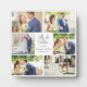 Este hermoso regalo de placa de fotos de boda de pareja recién casada presenta un diseño clásico de 6 fotos de boda sobre un fondo blanco con los nombres de la pareja casada, ubicación y fecha. Un maravilloso collage de fotos para la pareja recién casada o como regalo de aniversario para el esposo o la esposa.