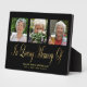 Elegante Placa en Memoria Colage de Fotos en Oro y Negro. Personaliza con 3 fotos, nombre y mensaje.