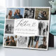 Celebre a su padre con un recuerdo verdaderamente personalizado que atesorará para siempre con nuestra elegante placa de colaje de fotos de padre personalizada. Esta impresionante placa de colaje de fotos familiares le permite mostrar 8 de sus fotos favoritas, con 4 en color y 4 en atemporal blanco y negro, capturando perfectamente sus recuerdos más preciados. El diseño presenta "Padre" en una elegante letra cursiva, junto con texto serif y script para un toque sofisticado. Haga que sea aún más especial agregando los nombres de sus seres queridos, un mensaje sincero o su cita favorita para crear un regalo único para el cumpleaños de papá, el Día del Padre o cualquier celebración familiar. Perfecto para cumpleaños, el Día del Padre o cualquier ocasión especial, esta placa de fotos personalizada para padre es tanto una hermosa pieza de decoración para el hogar como un recuerdo significativo que él exhibirá con orgullo. Diseñado y elaborado a mano por © Moodthology Papery.