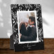 Placa de mesa con caballete incorporado que muestra tu foto favorita rodeada de un hermoso borde de follaje blanco, puntos y bayas sobre fondo negro. CAMBIA el texto de AMOR por cualquier otro - CONSEJO: coloca tu texto entre los dos cuadrados para conservar las florituras del texto. Ideal como regalo o para mostrar tu foto favorita en tu propia casa. Los colores de tu imagen se colocan directamente en el panel de tablero duro para una imagen sorprendentemente nítida con una superficie fácil de limpiar con un simple paño húmedo.