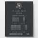 Elegante placa con caballete muestra sus servicios de salón o carta de precios con letras blancas clásicas sobre un rico fondo negro suave adornado con un ilustracion floral de imiscus de Relieve metalizado dorado tropical. Incluye tres encabezados de personalizable y campos de texto de cuerpo. Para ajustar el diseño, introduzca el texto y, a continuación, utilice la función Personalizar para cambiar el posicionamiento y el tamaño de las fuentes.