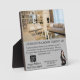 Mínima y simple comercialización Tabletop Plaque con Easel para cada agente inmobiliario y de bienes raíces. El texto y las imágenes se pueden personalizar. Añada sus datos de contacto y el logotipo de la empresa, un código QR u otra información relevante a este producto promocional de la agencia inmobiliaria.