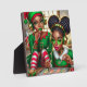 Los elfos rodeados por una bandeja de galletas de vacaciones, incluyendo los girasoles de menta y los diseños de árboles de Navidad, junto con regalos envueltos y decoraciones navideñas, creando una escena cálida y caprichosa perfecta para la temporada navideña.