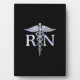 Placa Expositora Enfermera inscrita RN Silver Caduceus en negro