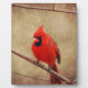 Un cardenal sentado en mi árbol Mimosa esperando su turno en el alimentador de aves.