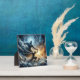 La placa de escritorio "Escudo de Fe" sirve como recordatorio diario de la protección y la fuerza que encontramos en Dios. La imagen de la figura desintegradora que se acerca a otra representa nuestras propias vulnerabilidades y la intervención divina que nos asegura la victoria en nuestras batallas.